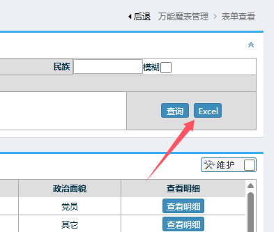 设计好的万能魔表明细表如何导出为excel格式文件?​注意页面上有一个Excel导致按钮,点击即可。