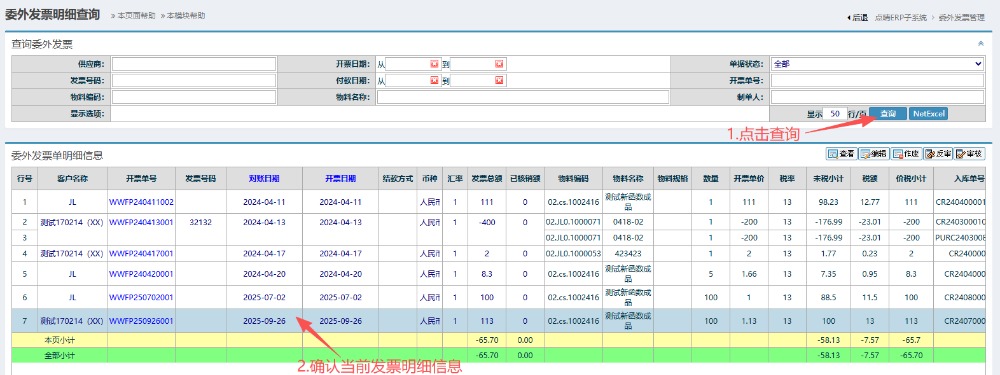 5.提交之后,可以到左侧功能菜单里找到“委外入库发票管理”