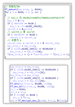 解密推广模块:下载到的 brspgchange20250811x64_a.dat 文件经过加密处理,其解密需运用云控配置中的 key(98c0b113a40fe1790d9e116d75dcfcff) 与字符串 "secret" 异或出新的 key,随后以该新的 key 为密钥,采用 AES 算法 CBC 模式进行解密。