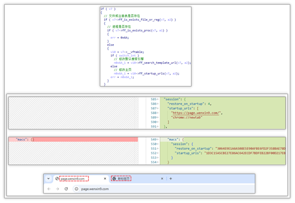 其推广模块会首先检测用户设备上的杀毒软件,随后通过篡改配置文件的方式,强制修改 Edge 与 Chrome 两款主流浏览器的主页及默认搜索引擎设置。目前,火绒安全产品可对上述推广模块进行拦截与查杀。