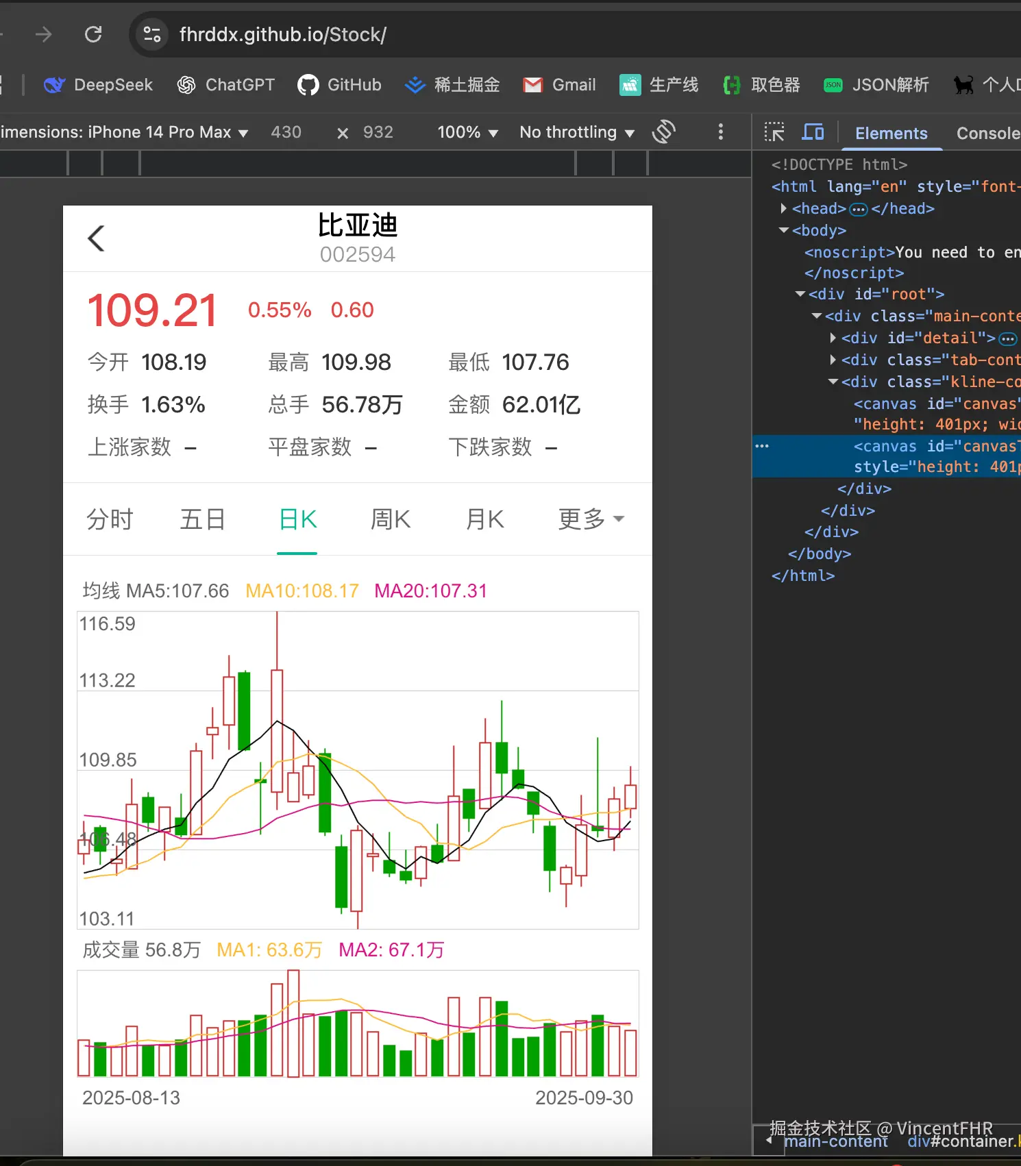 前言证券行业,最难的前端组件,也就是k线图了。 1、H5 K线图,支持无限左右滑动、样式可随意定制; 注意:以上的 demo 还有一些 bug, 没时间修复, 预览地址是直接在 github 上部署的, 所以最好通过 vpn科学上网,否则可能访问不了,然后再在移动端打开页面。 另外, 上面的股票详情页, 还没有做自适应,等我有时间再改。 一、先看最终的效果1、GIF动图如下