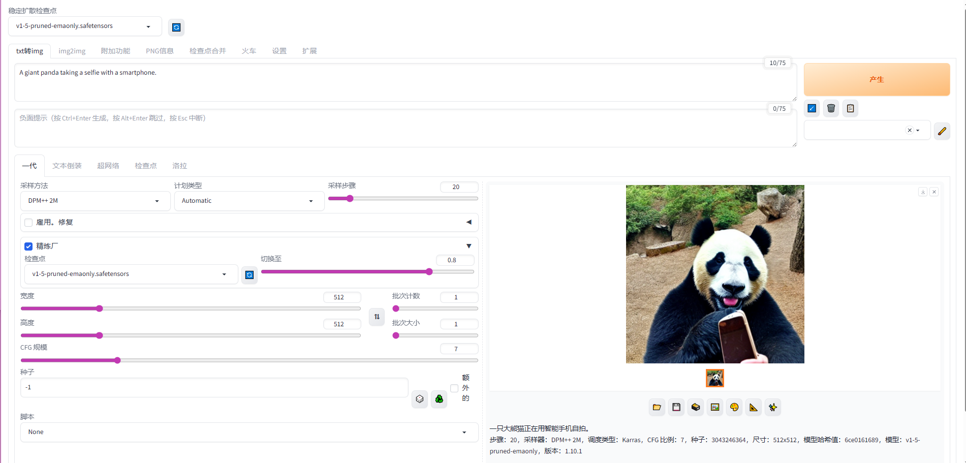 这里默认下载的是v1-5-pruned-emaonly。查了下最新的有v2版本,下面就配置个v2版本。