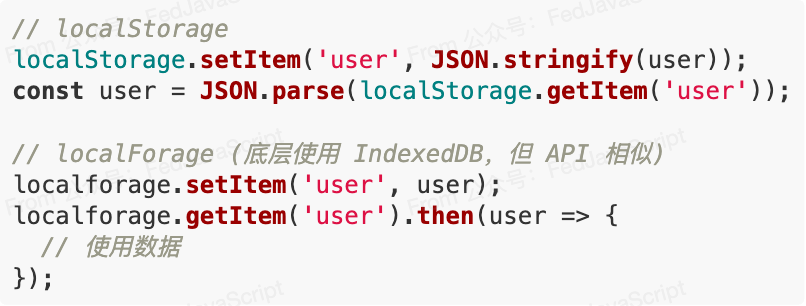 以 localForage 为例,迁移成本几乎为零: