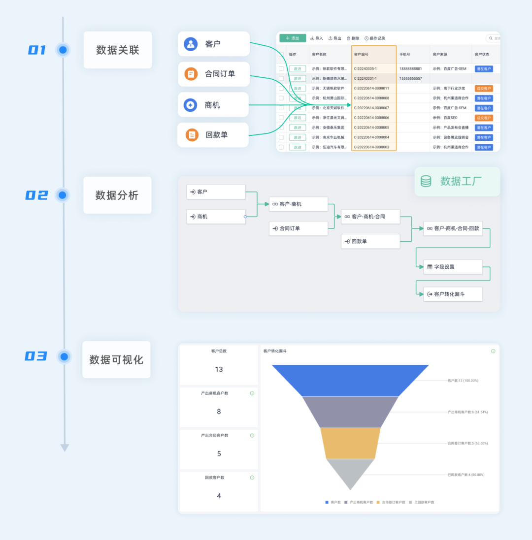 数据要看得见。 漏斗图能帮你一眼看到每个阶段的客户量、转化率。