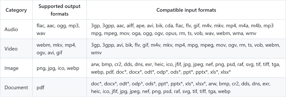 多种文件格式支持:支持视频、音频、图像、文档数十种文件格式的转换