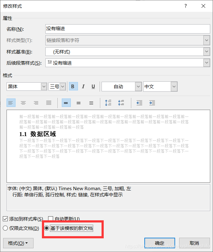 记得新建的样式的“基准样式”要选择“(无样式)”;此外保存时可以选择“基于该模板的新文档”。