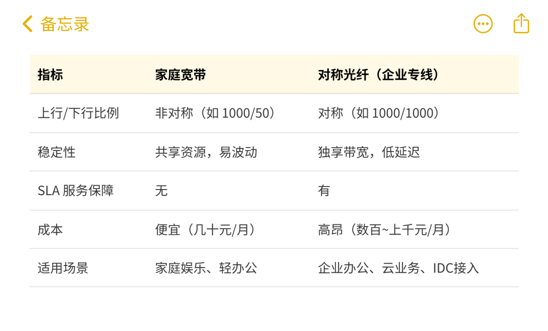 从这个对比可以看出,对称光纤更多应用于企业和高端用户。 但随着 XGS-PON 普及,一些城市的家庭宽带也开始试点“上下行对称套餐”,价格比企业专线低得多。 这意味着未来,对称光纤将逐渐走进大众家庭,成为云时代的基础设施。 你该不该换对称光纤?换句话说,对称光纤并非“所有人都需要”,但对于某些人,它的价值非常高。