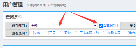 所在部门”务必选择为“全部+含离职员工”或者“离职员工组”,系统提示重复的用户名录入到“英文名”,就可以查出已经存在的用户了,正常情况下该用户应该已经被调整至“离职员工组”了。找到此用户,点击“姓名(用户管理)”中对应的用户名,然后在以下弹出页面中,重新设置登录密码,并设置主岗位为此员工应去的新岗位,就可以调整该员工到正常部门再次使用了。